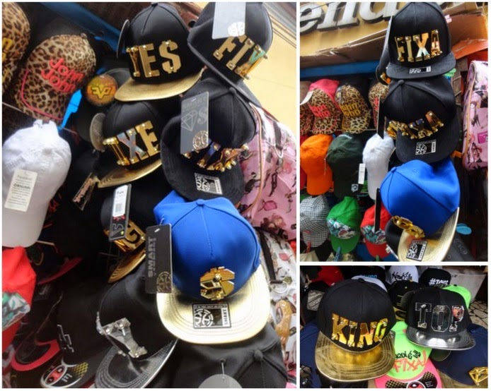 Pois bem, no fim de ano eu havia visto uma apresentação de dança onde o pessoal que dançou Stiletto usava bonés mega descolados e com palavras espelhadas. Até então eu não conhecia esses bonés mas como eu amo tudo que é super diferente, me encantei. E não é que me deparei com eles em plena luz do dia, nos camelôs do Paraguai ?