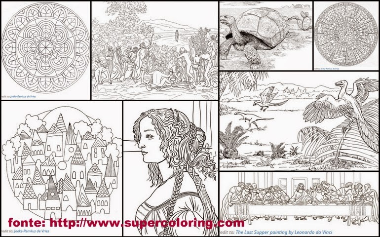 Amei essa página pois ela tem desenhos bem detalhados. São várias categorias e é difícil dizer de quais mais gostei. Algumas categorias tem desenhos bem simples, outras tem desenhos mais rebuscados, mais detalhados ou super interessantes para pintar. Amei particularmente os desenhos de aves, répteis, mamíferos e dinossauros. A parte de insetos também oferece desenhos onde podemos explorar bastante a criatividade e o universo das cores. Os desenhos de feriados e cenas bíblicas também são bacanas. Mas é em Arte e Cultura que estão os desenhos mais legais provavelmente ! Mas procurando em Fantasia e na categoria História, também encontramos alguns bem interessantes.