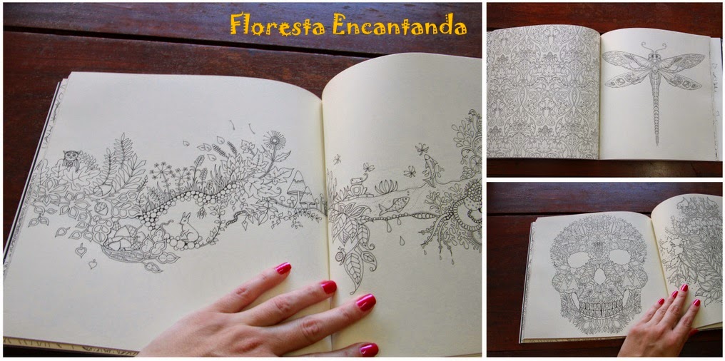 Primeiro vou contar rapidamente dos dois que comprei: Jardim Secreto e Floresta Encantada. Além de serem recheados de desenhos para colorir, ambos tem mais uma proposta agregada. Enquanto na Floresta você teria que encontrar os diversos bichinhos que mostra no início do livro pra desvendar o segredo da Floresta Encantada (na verdade, acredito que nada concreto pra ser realmente desvendado, apesar que recém comecei a pintar), no Jardim Secreto várias páginas tem propostas criativas pra você ampliar, modificar, completar os desenhos. Achei a proposta do Jardim Secreto muito mais legal.