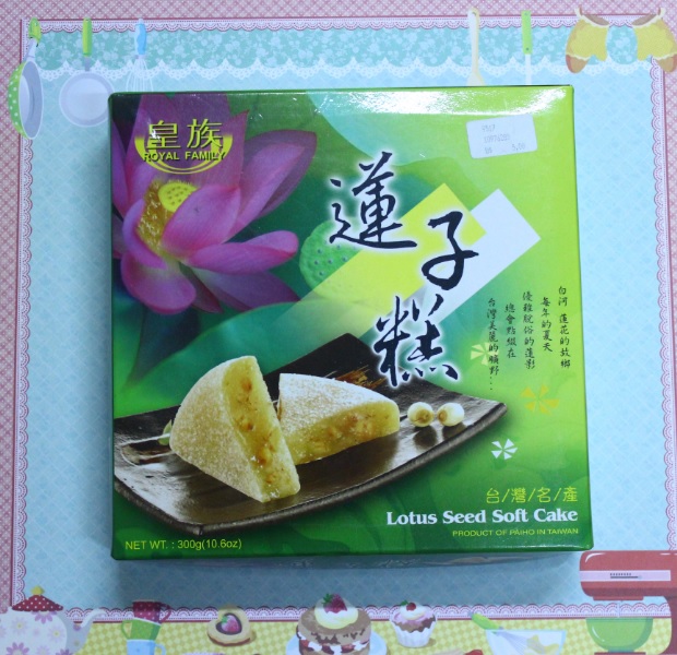 Já o outro produto que comprei foi esse bolo super exótico: Bolo de semente de Lótus. Bom, Lótus é uma flor, então pensar num bolo de flor já deveria ter sido um alerta pra mim. Mas como eu eventualmente gosto de uma aventura gastronômica, trouxe esse bolo com uma aparência muito estranha pra casa: