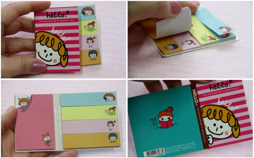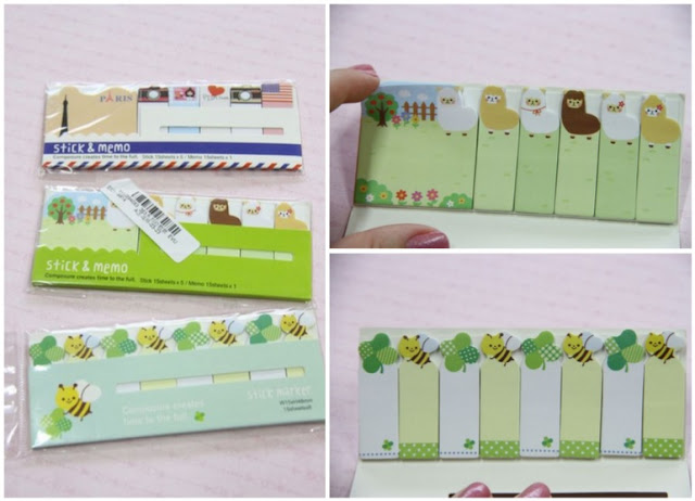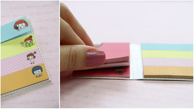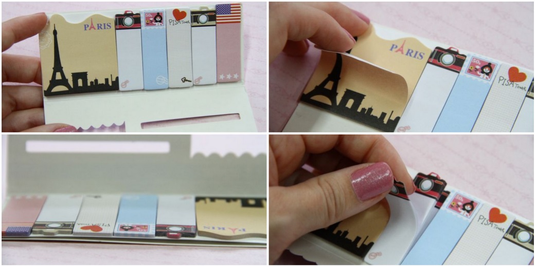 Esse debaixo também foi uma super gracinha. Vem vários folhetinhos de post-it, um maior com a Torre Eiffel e os outros pequeninos, com desenhos simpáticos e variados. São ótimos pra fazer marcação em páginas de livros, apostilas, ou mesmo pra recadinhos rápidos em agendas.