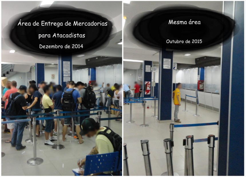 E dá pra ter uma boa ideia ao ver a loja, que é super grande, especializada na área de eletrônicos. Embora o andar de vendas estivesse bastante movimentado, a quantidade de compras visivelmente não era equivalente. Reparem na diferença de movimento de 10 meses atrás pra agora.