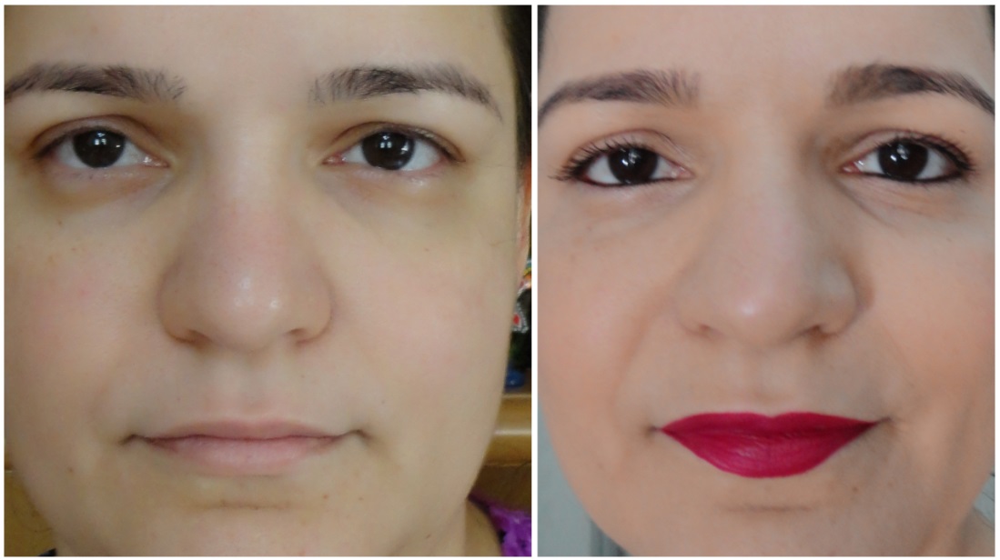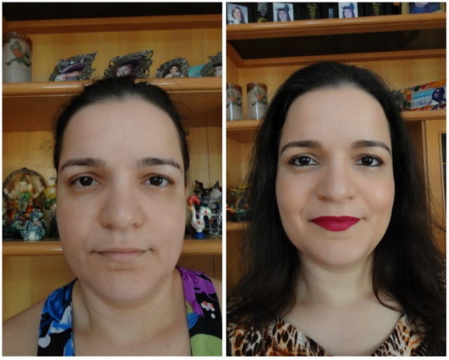 Olhem só então como acordei e como foi o resultado final. Observem que minha carinha é basicamente a mesma ! Parece que não tem nada na pele, você pouco visualiza traços de make no rosto, nada de massa corrida, enfim … um arzinho de “acordei assim mesmo”. Parece que foi, mas olhem como não foi => Aqui o antes e depois: