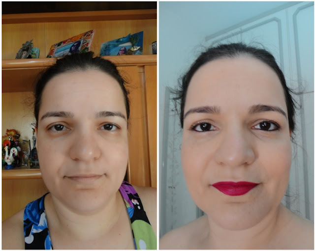 Mesmo parecendo que não há nada nos olhos, uma arrumadinha leve na sobrancelha que mal dá pra notar, corretivo e rímel já são capazes de milagres na transformação. Observem como o olhar abriu (mesmo com o lápis preto !).