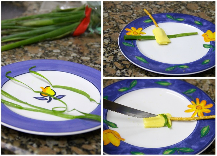 E pra deixar um acabamento mais bonito e também dar uma certo auxílio na firmeza, você pode usar cebolinha pra amarrar o queijo na pontinha.