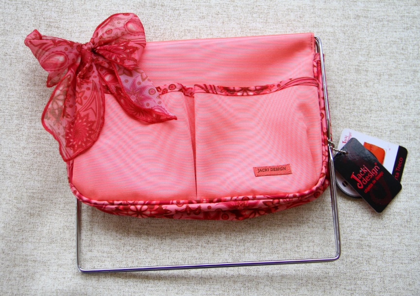 Lindo, não é mesmo ? E esse organizador tem numa versão um pouco menor, com 2 bolsos externos na frente também mas um é bem pequerrucho. Ambos vem nessa armação de metal e podem ser retirados da armação pra lavar por exemplo.