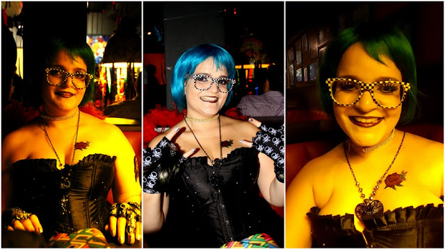 As luvas também são emprestadas. Essas luvas são de uma fantasia de pirata que minha mãe usou ano retrasado na Festa a Fantasia do Zeppelin. Ficaram perfeitas no look. Ahh gente, detalhe, a peruca é AZUL mesmo. Mas as luzes dos camarotes do Zeppelin acabam por deixar a gente assim ,de outra cor rsrsrs. Não se espante se sua roupa, suas unhas ou até seu cabelo saírem com outra cor nas fotos rsrs. Mas é só com a luz amarelada do camarote gente, não pirem não rsrs.