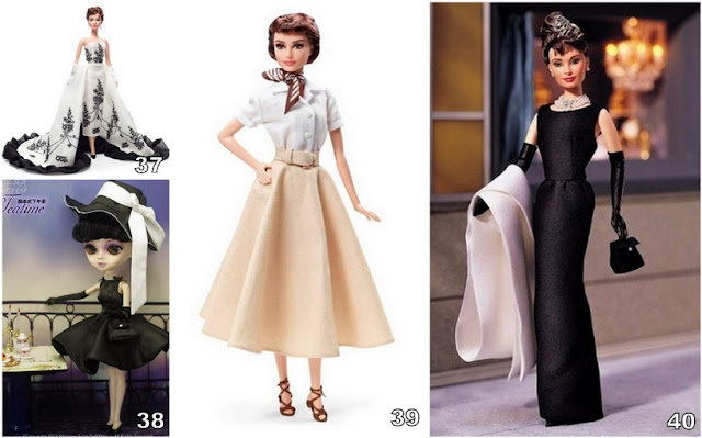 Obviamente nada me encanta tanto como as bonecas da Audrey. A Barbie Collector, especializada em lançar bonecas memoráveis da Barbie, tem algumas versões incríveis da Audrey (37, 39 e 40). Uma opção alternativa baratinha xing-ling pode ser encontrada no Aliexpress (38).
