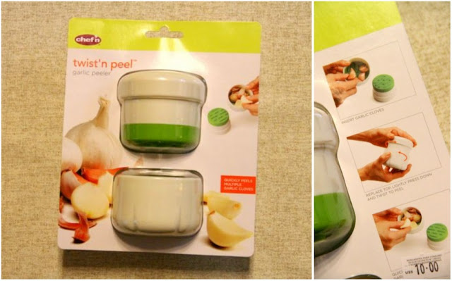O próximo produtinho que vou mostrar é um desses utensílios de cozinha coloridos siliconados que estão super em alta. Esse é um descascador de alho – promete ser um jeito prático de tirar toda a casca sem você precisar ficar sujando seus dedinhos (a sujeira não é nada – a vantagem é ficar com os dedos livres do cheiro de alho !).