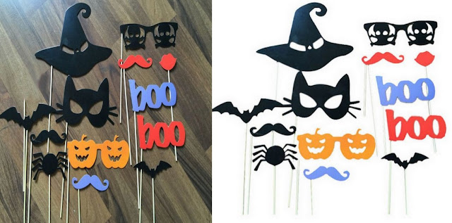 Uma outra coisa super bacaninha que encontrei com um preço super simpático foi esse kit contendo 13 peças de Halloween pra tirar fotos. Sabe, essas fotos que a gente tira segurando os cabinhos com frases ou figuras divertidas ? Olha que bacana: