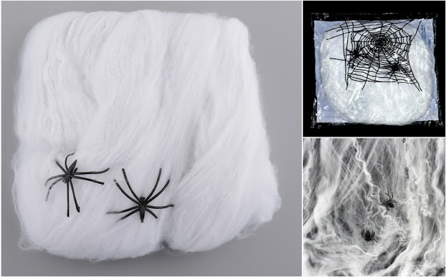 E claro que não poderiam faltar as teias de aranha pra deixar tudo bem assombroso. São ótimas pra decorar beiradas de portas e muros ou mesmo as paredes. Tenha muito cuidado com o posicionamento evitando estruturas que possam se aquecer e inflamar, como luminárias, lustres, etc.