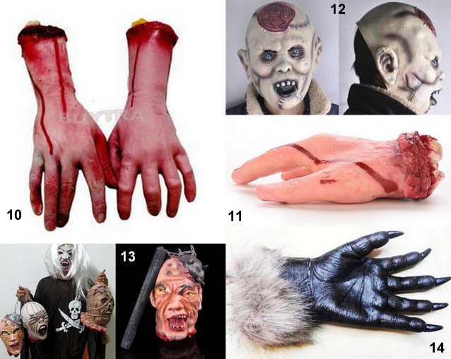 Vamos dar uma incrementada bacana nessa decoração ? Que tal algumas mãos decepadas pra deixar o cenário bem horripilante ? Cuidado pra não assustar em demasia as crianças. Talvez você prefira reservar estes itens pra festas pra adultos.