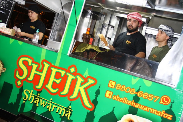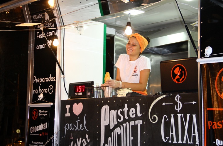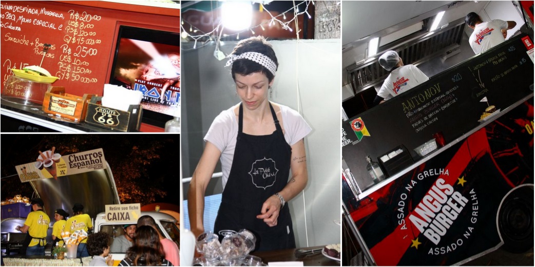 Tinha trucks variados, de burguers, pastéis, crepes, mexicano, shawarma, doces, etc.