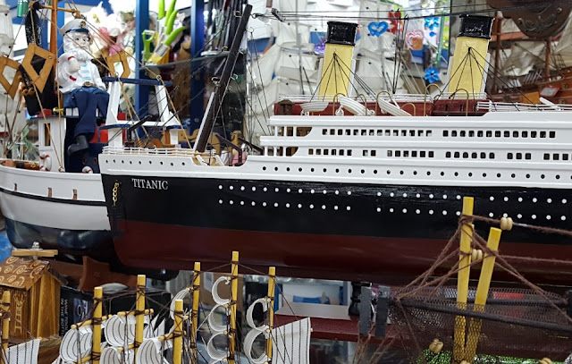 E entre tantas utilidades, bonecas, algumas inutilidades, enfeites lindos, miudezas e muitas coisas bacanas … encontrei vários enfeites marítimos, ótimos pra quem curte essa vibe aquática ou ainda pra quem mora no litoral ou mesmo pra enfeitar os afortunados que tem casa de veraneio. Além de faróis, marinheiros e barcos … havia uma super réplica de um Titanic, enorme, muito bem feito e muito lindo. Mas bota lindo mesmo !!!
