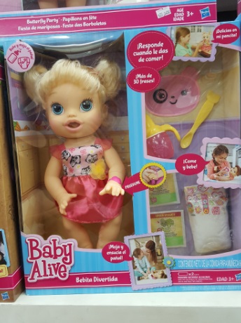 Resolvi fazer esse post pois percebi a recorrência que as pessoas perguntavam sobre os preços da Baby Alive no Paraguai. Como não temos meninas pequenas próximas na família, estou completamente por fora desse brinquedo e não sei qual modelo da boneca é mais valorizado ou faz mais sucesso entre as meninas. Então visitei algumas lojas e dei uma olhada por cima nas bonecas só pra dar um panorama pra vocês.
