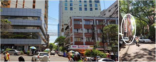 A Chenson Outlet fica do lado esquerdo do Paraguai. na rua Abay, bem próximo da loja principal da Chenson, bem pertinho da loja oficial da P&W. Pra facilitar, vou mostrar umas fotos coringa. Subindo ali a rua do Vendome, da Nissei, sigam subindo ali na Avenida Adrían Jarian. .. quando vocês avistarem estas duas farmácias significa que estão na Rua Abay. Agora é só pegar ela pra ESQUERDA … ou seja, se afastando da avenida. , Mais ou menos na metade da quadra vocês vão avistar a lateral da Chenson Outlet (foto abaixo). Só encontrar a escadaria de acesso e ser feliz ! (fica no subsolo).