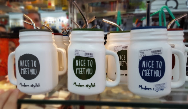 Agora subindo mais um pouco topamos com a Casa China, antiga loja e tradicional na venda de artigos diversos, com um destaque especial para os itens para casa e cozinha. Nesta ida topei com muitas canecas por lá. Muitas ! Dessas térmicas, não térmicas, de vários tipos. Olha que coisa mais linda esses copos em cerâmica com aquelas tampas hermética.
